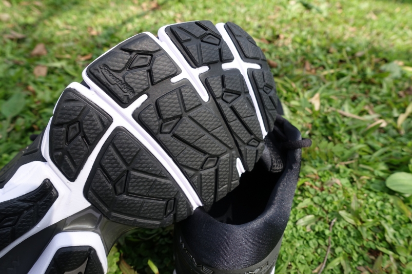 Wave Sky 2 在最容易磨損的外側後腳跟部位,採用「X10 超耐磨大底材質」(圖片來源:吳俊毅)