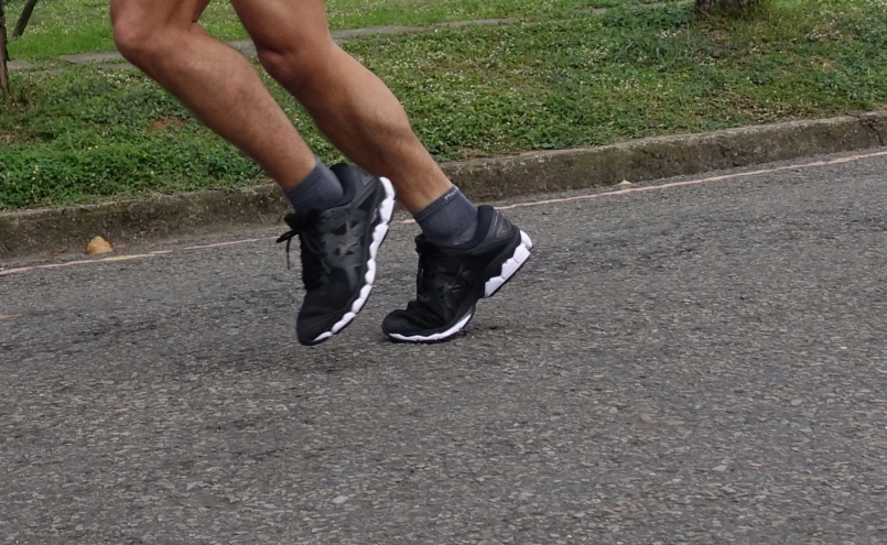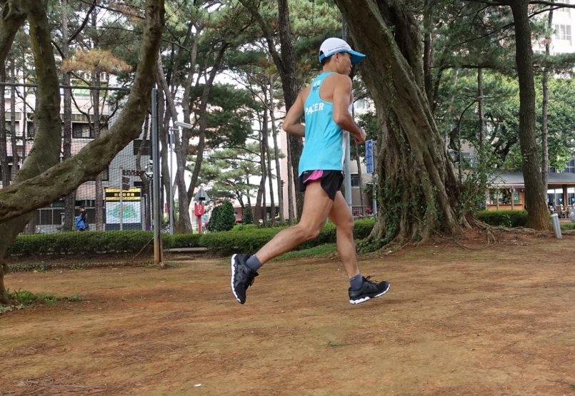 在較為堅硬的水泥路面,Wave Sky 2 中底的緩震回彈性能,減輕雙腳的衝擊負擔,維持輕快的跑步節奏。(圖片來源:吳俊毅)
