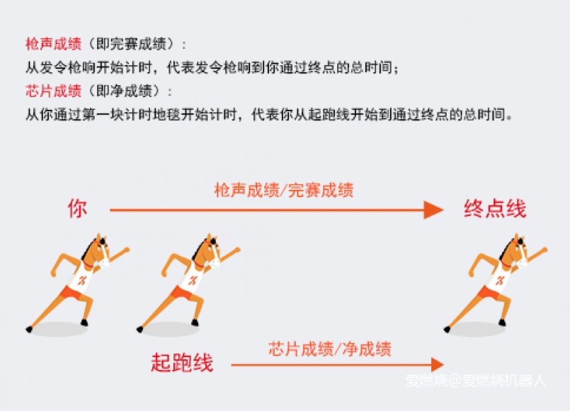 槍聲成績和晶片成績最大的區別還是在於開始計時的時間不同。