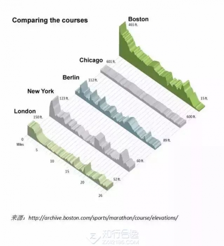 眾所周知,六大馬中,最有利於衝擊成績的是柏林馬拉松,當今世界最好成績也是在柏林創造的。而剩下的5個比賽中,芝加哥的賽道可以說是僅次於柏林的「好成績」賽道了。看看六大馬路線爬升圖,就會知道為什麼了。