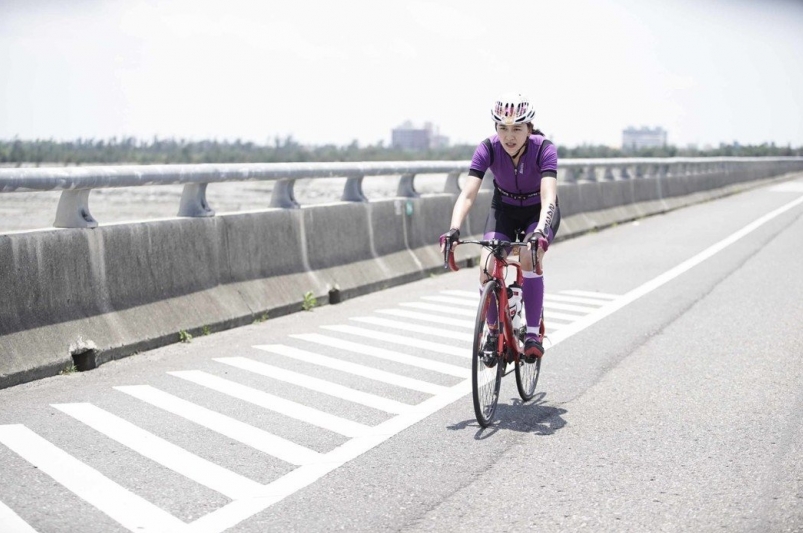 張家慧在台東拍攝騎自行車片段。(圖片來源:周子娛樂)