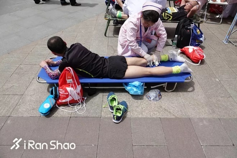 還有些無經驗的跑友會橫穿跑道來和路邊的親友打招呼,這些都容易發生衝撞。當然還要小心地面的飲料罐和一次性雨衣。