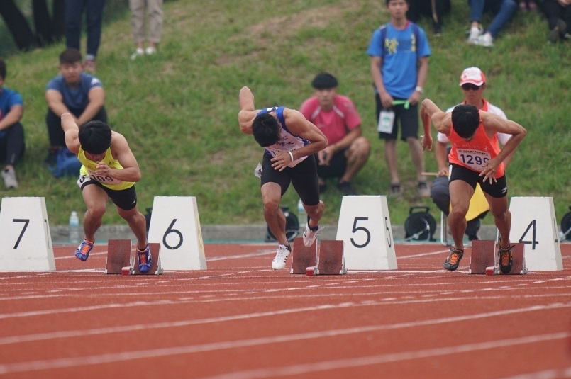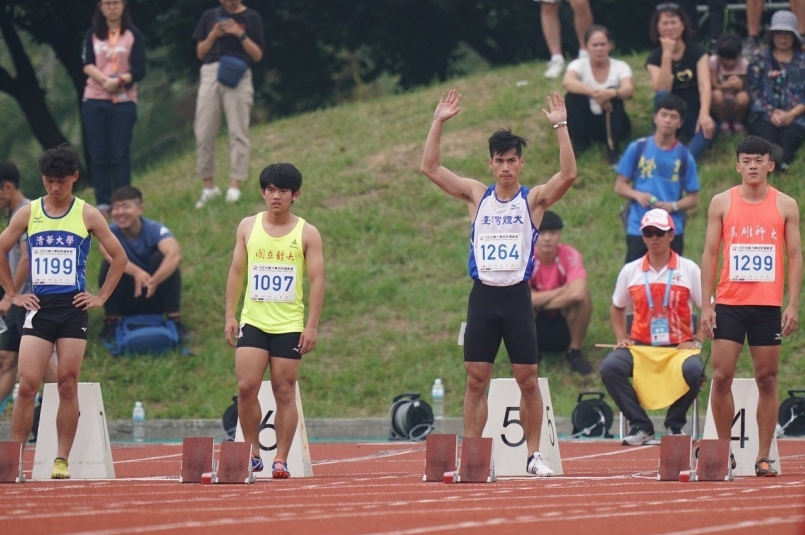 楊俊瀚(中)百公尺起跑犯規。(圖片來源:中正大學)