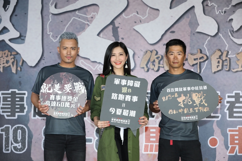 東引軍事越野障礙賽,搖滾創作才子 范逸臣(左) 與極地探險家林義傑(右)將相揪馬甲線女神梁一貞(中)挑戰地表最狂賽事(圖片來源:主辦單位)