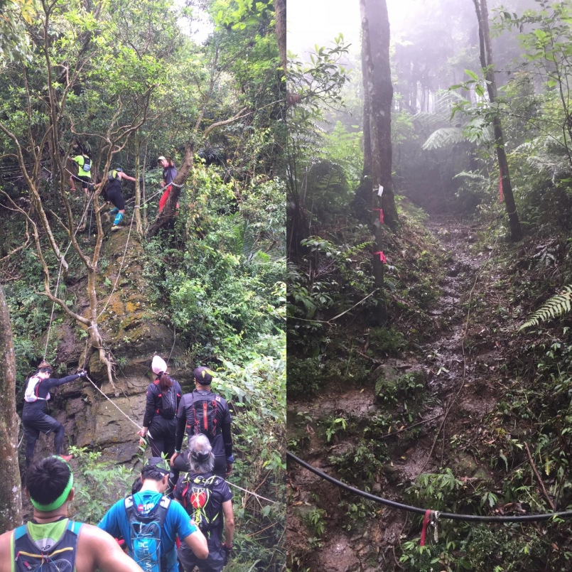 TBT 野獸山徑越野賽有好幾段賽道,也許是賽道被雨水沖刷好幾日,大自然改變了路況,沒陸地可踩,需要雙腳攀登斜壁,拉著繩索才能持續接下來的賽道。進行各項運動,抽筋是我的罩門之一,比起三月時的萬金石馬拉松,在 35 K 獅頭山小公路上坡,就讓我大腿抽起來恍如一世紀之遠,這兩次有驚險的山徑更強烈消耗肌群力量,McDavid 交叉壓縮短褲的壓縮功能真的很給力,支持我兩次無傷且平安完賽,讓我沒有抽起來不是人的抽筋意外,已是幸運。