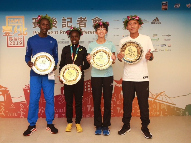 蔣介文、朱盈穎摘下國內冠軍,肯亞跑者蒙格拉和卡萬拜獲今年台北馬拉松冠軍。記者黃義書/攝影