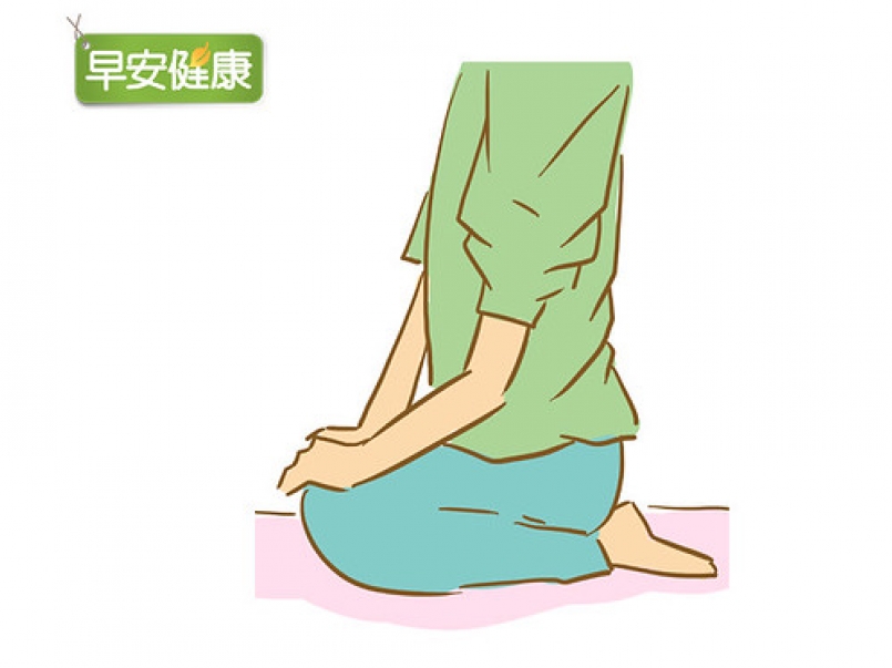 2. 彎曲腳背,腳尖點地,屁股坐在腳後跟上。