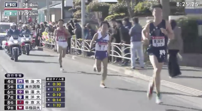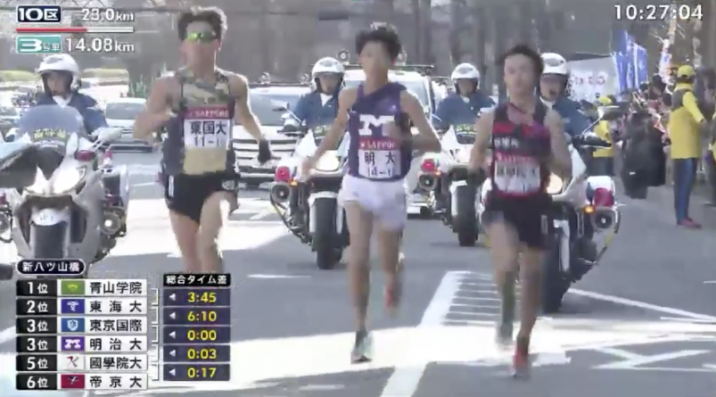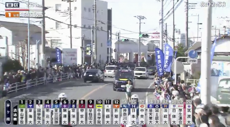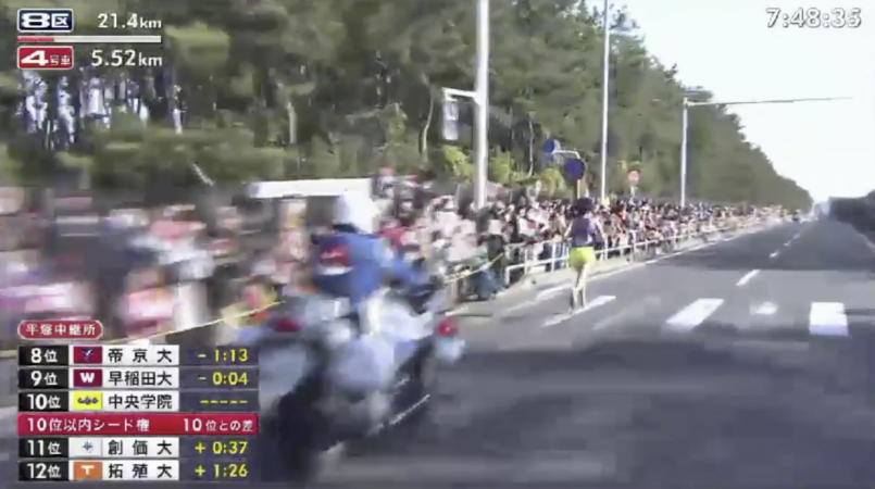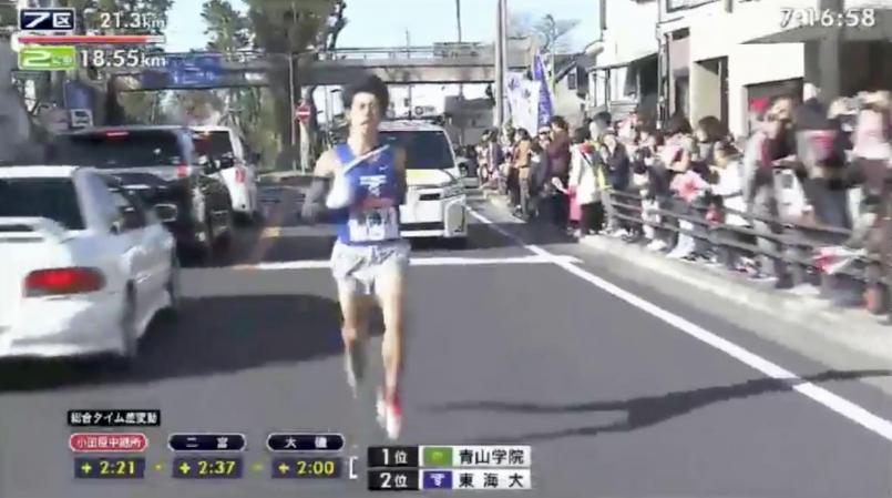 東海大、國學院大的第二位拉鋸戰,但獨跑的青學大仍拉開領先差距。