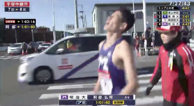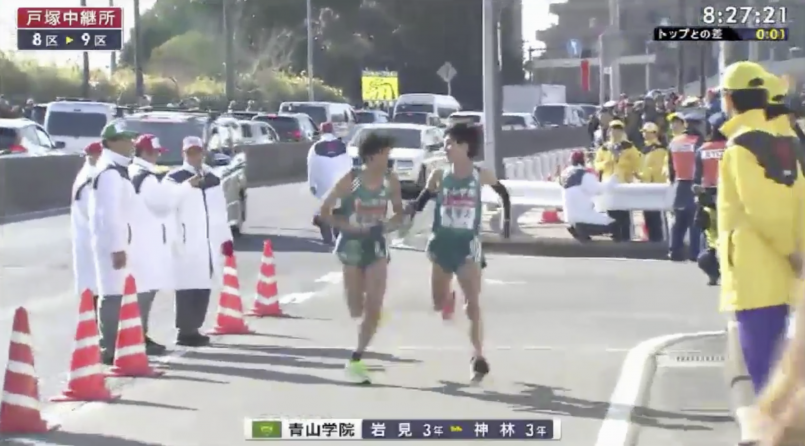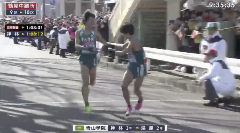 青學大領先跑完第九區,神林以11秒與區間紀錄擦身而過。