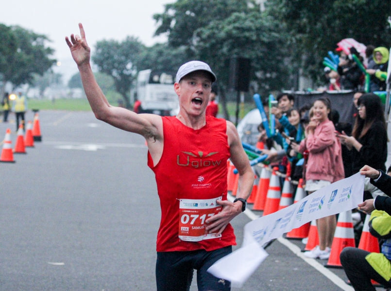 美國選手 SAMUEL FLETCHER 以1小時07分34秒獲 2020 渣打馬總一。(圖片來源:轉身)