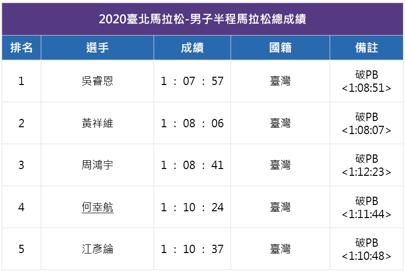 【臺北馬】周庭印 國內封王寫下個人全馬佳績,吳睿恩半馬刷新個人PB