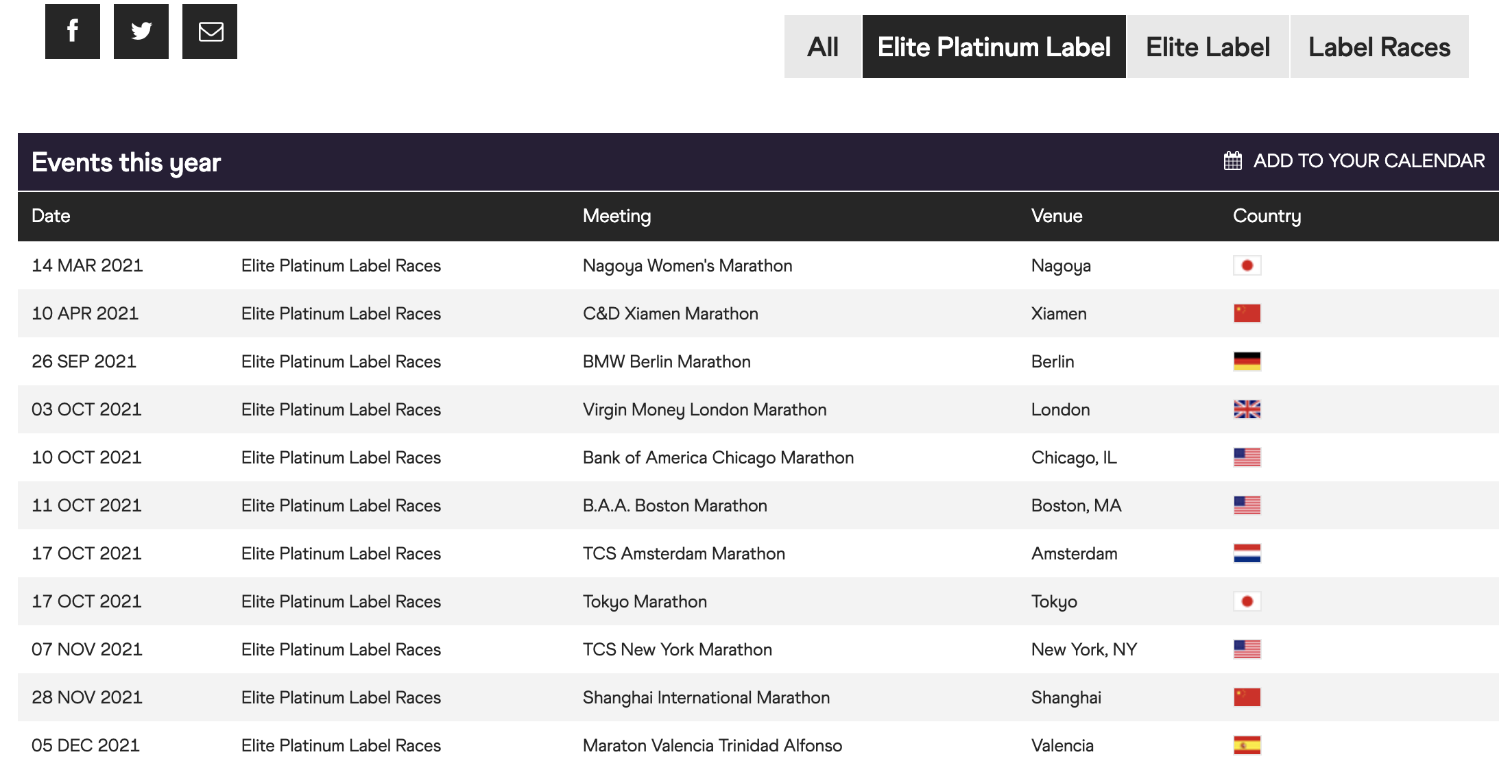 2021年被列為「菁英白金標」的賽事(截圖自 World Athletics)