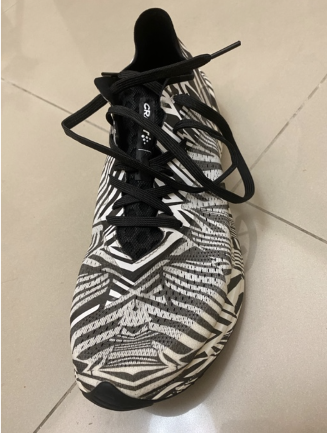 這雙鞋上腳的感覺覺得腳尖空間很大,非常適合寬楦的腳型。腳後跟鎖定感在剛上腳的時候沒有很好,但是大概跑了五分鐘就沒有感覺。輕鬆跑的配速下(5分到5分半),並沒有感覺碳板的推力,40mm 的鞋跟泡棉厚度,倒是覺得緩衝感十足。很寬的底部設計,落腳感很安定,40mm 這樣高度下在角度很大的轉彎下不會覺得有翻船的疑慮。