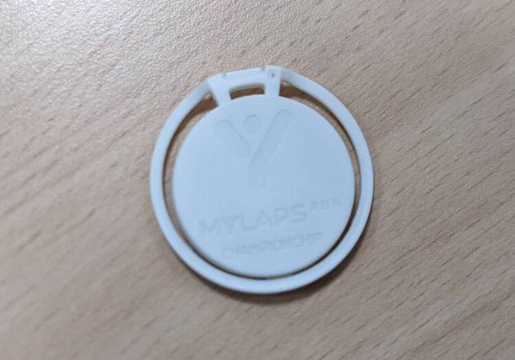 為大部分跑步賽事較常使用,由於成本較高,所以會在報名時收取 100 元保證金,於賽後憑晶片退還,常見品牌為冠軍晶片是一顆白色圓形的樣式及 IPICO 晶片一片長方形樣式,優點是不怕水且有完整的包裝保護晶片。