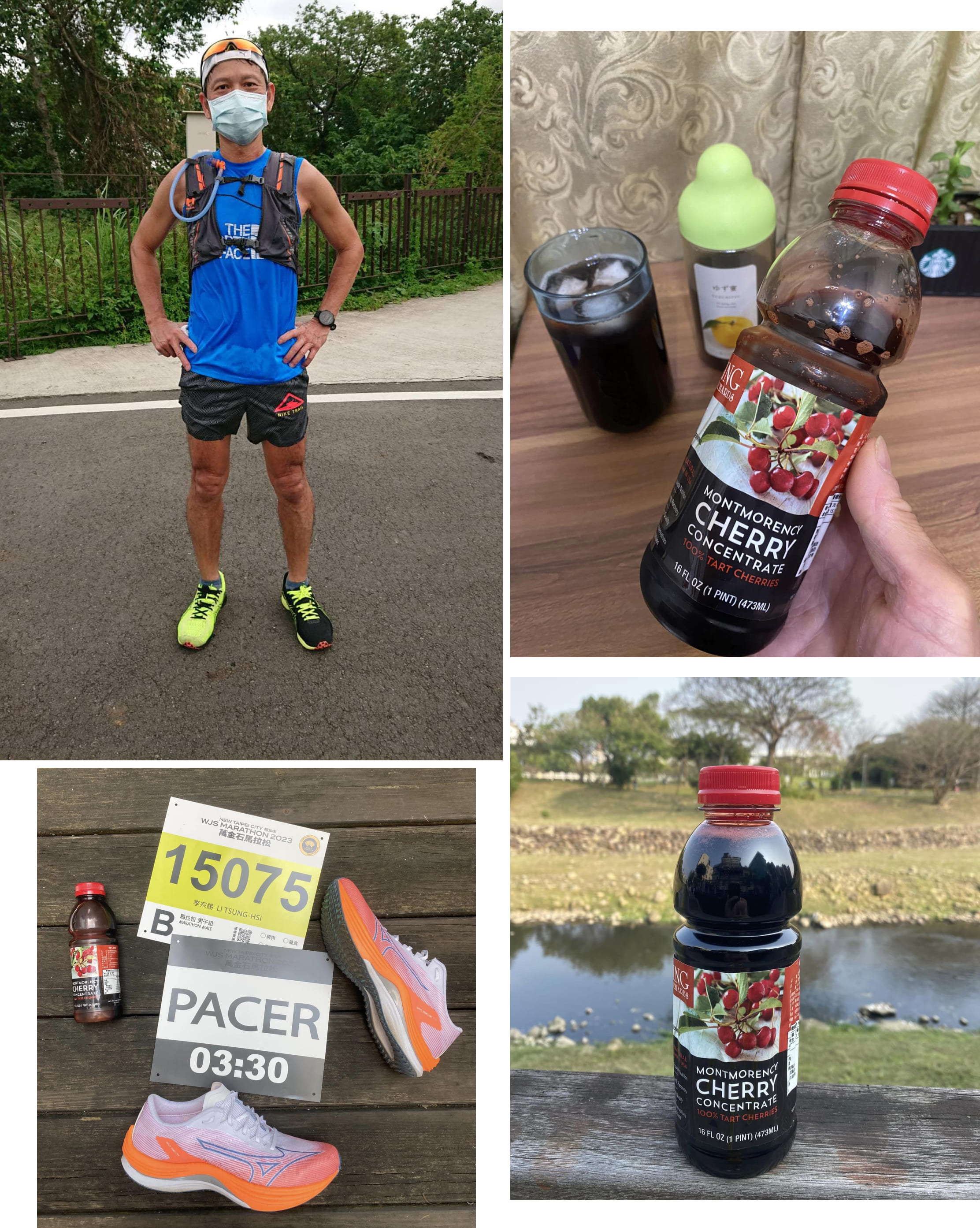 吳大:「為了能順利達成全馬配速任務,假日我一般都會跑個半馬維持長距離跑步的體能,每次跑完都會喝可樂補充能量,不過最近改喝櫻桃王100%酸櫻桃汁,濃縮的蒙特羅西品種酸櫻桃,稀釋後像紅酒一樣的漂亮,喝起來酸酸的,而且製造時沒有加一滴糖跟防腐劑,對身體更好,有利於運動後的恢復,隔天感覺還能再跑一下!」