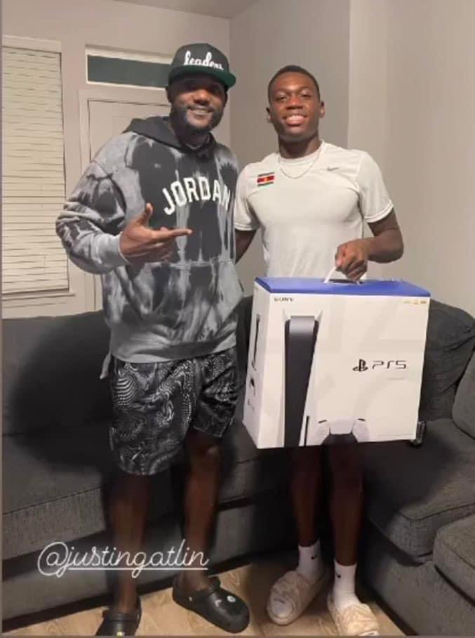 並且已退役的美國短跑運動員 Justin Gatlin 還因此贈送了一台 Ps5 給 Issam Asinga,他在社群貼文中寫道:「我向 Asinga 承諾,如果他能夠跑出 9.8 秒就送他一台 Ps5,而他兌現了承諾,這是一個特殊時刻!」