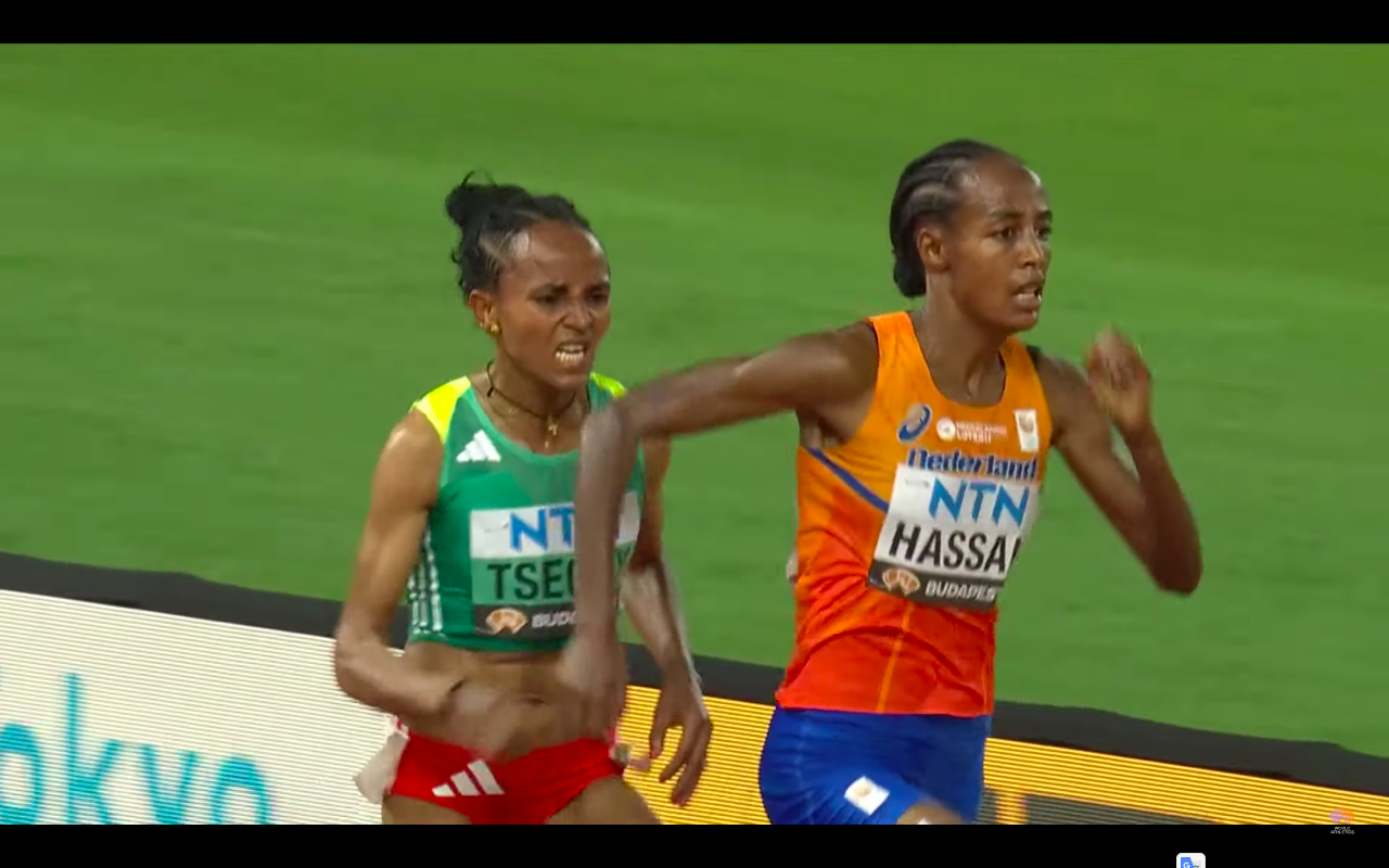 Tsegay 緊咬 Hassan 不放。 圖/World Athletics直播截圖