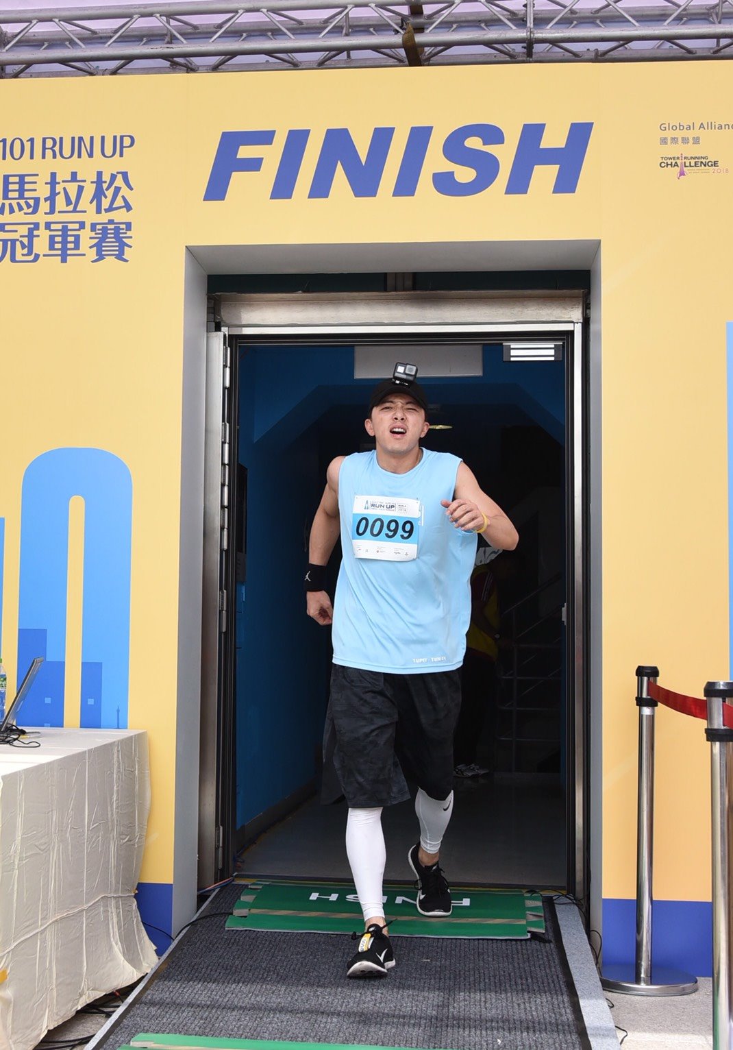 藝人坤達也曾參加 台北 101 垂直馬拉松,在 2018 年跑出 21 分 41 秒 32 秒 的成績。圖/台北 101 垂直馬拉松 FB