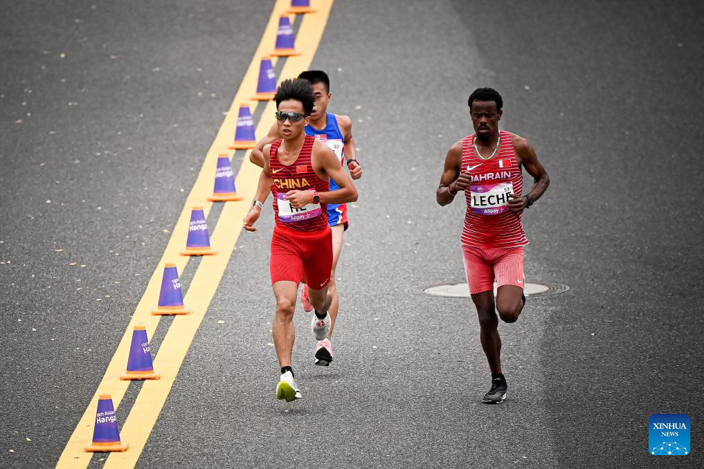 比賽開始,首個 5 公里,中國選手 何杰、楊紹輝 以 15:57 帶領集團前進,來到 6 公里處時,巴林選手 Shumi Dechasa 率先發動進攻將隊伍撕裂拉長,隨著他的突擊,也讓前面枯燥的比賽更加有趣。