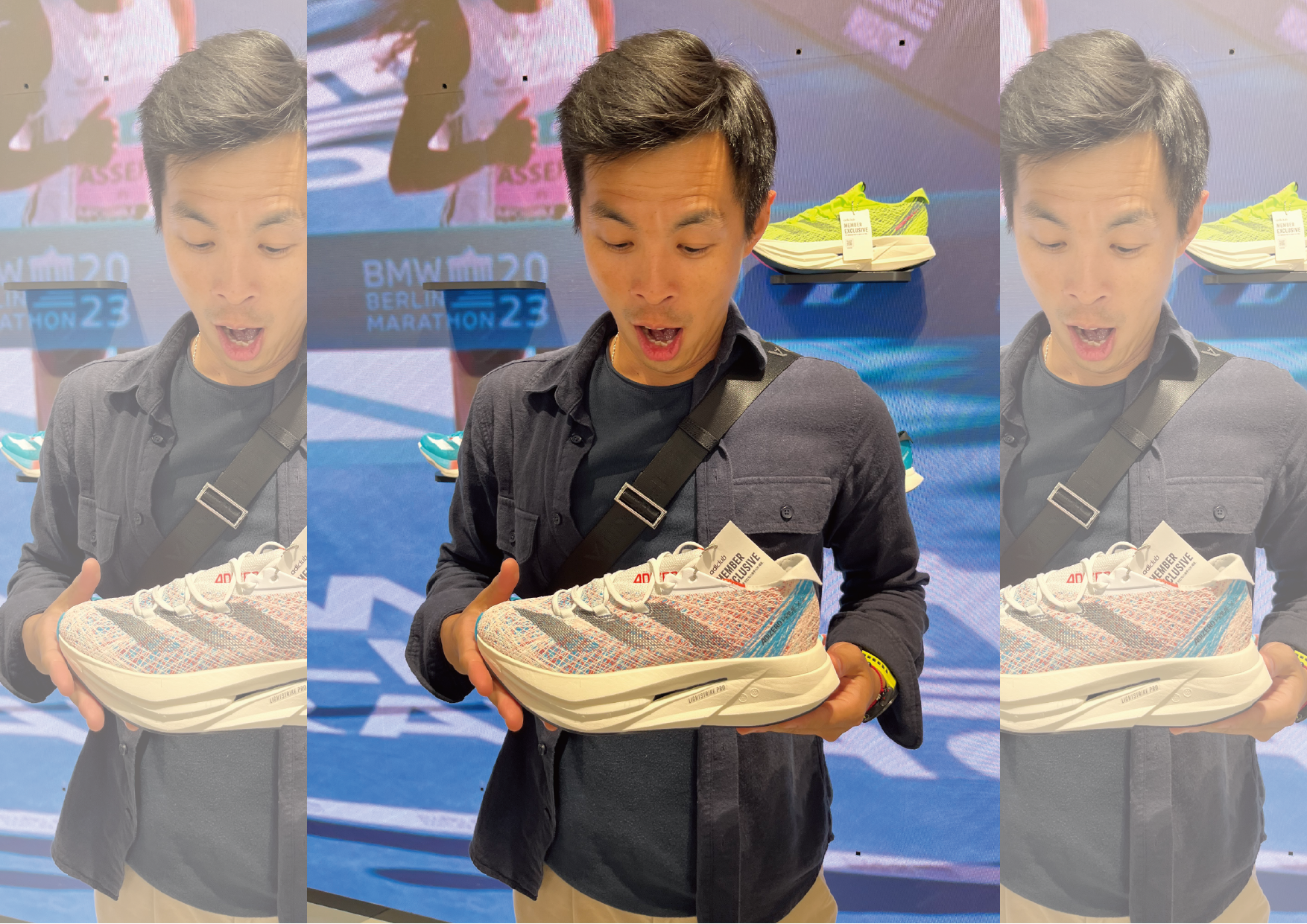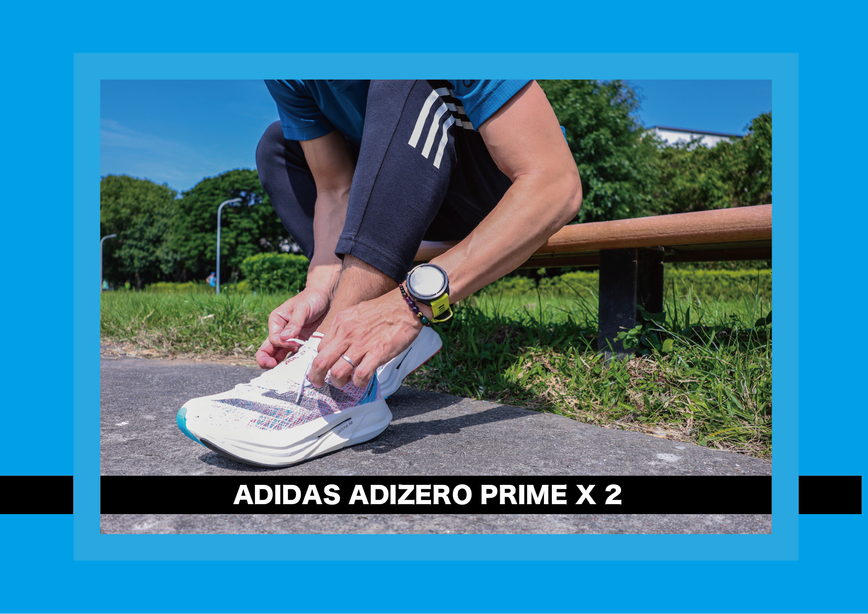 每當我收到 adidas 跑鞋通知時,都會先透過社群平台查詢最新資訊,然後設想著我穿上跑鞋的樣子,這次有幸在臺灣還未上市時,我身在韓國首爾能搶先見到 ADIZERO PRIME X 2 真貌,當時背景還是 2023 柏林馬拉松 Tigist Assefa 打破女子馬拉松世界紀錄畫面 2 小時 11 分 53 秒。
