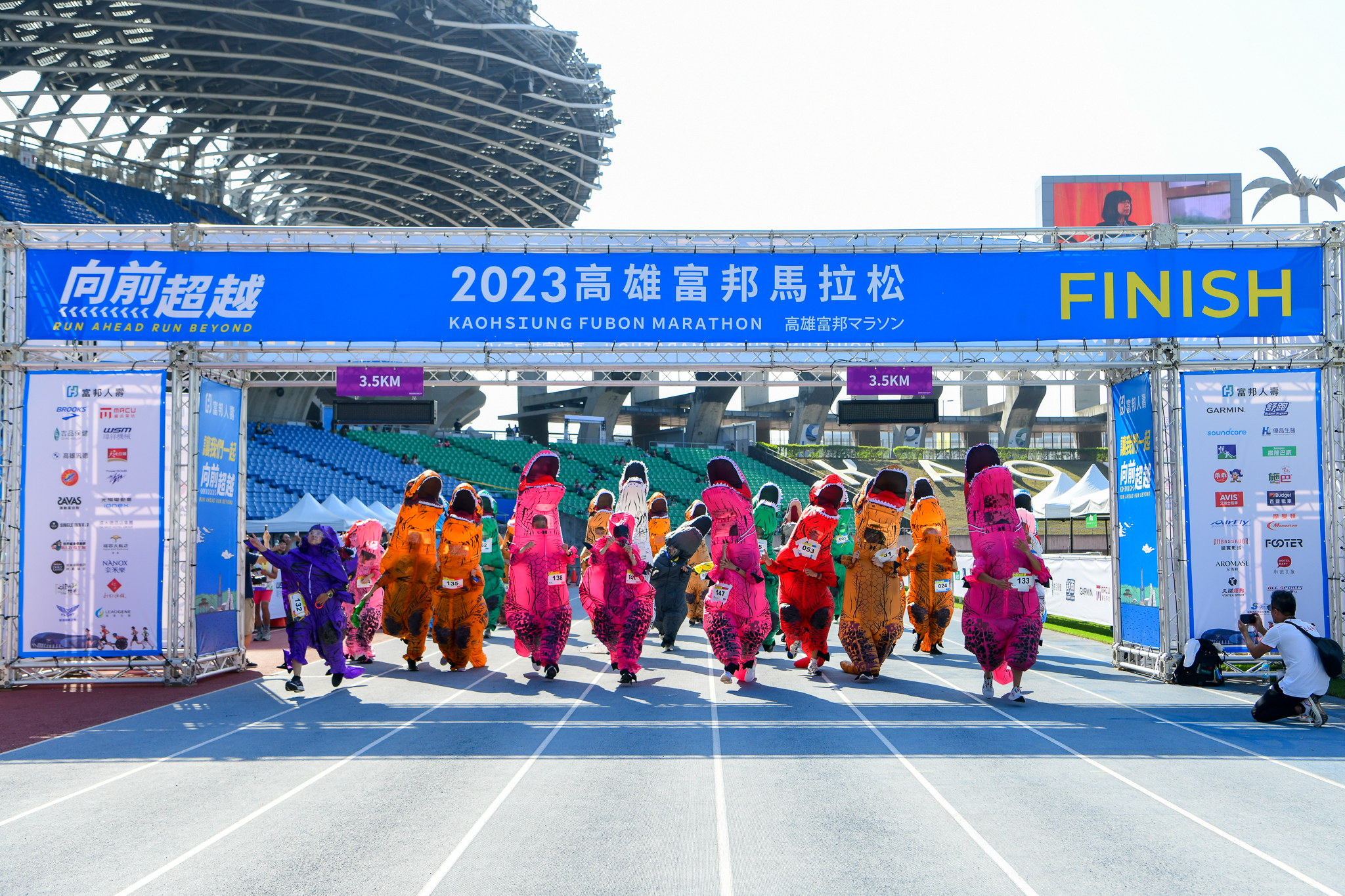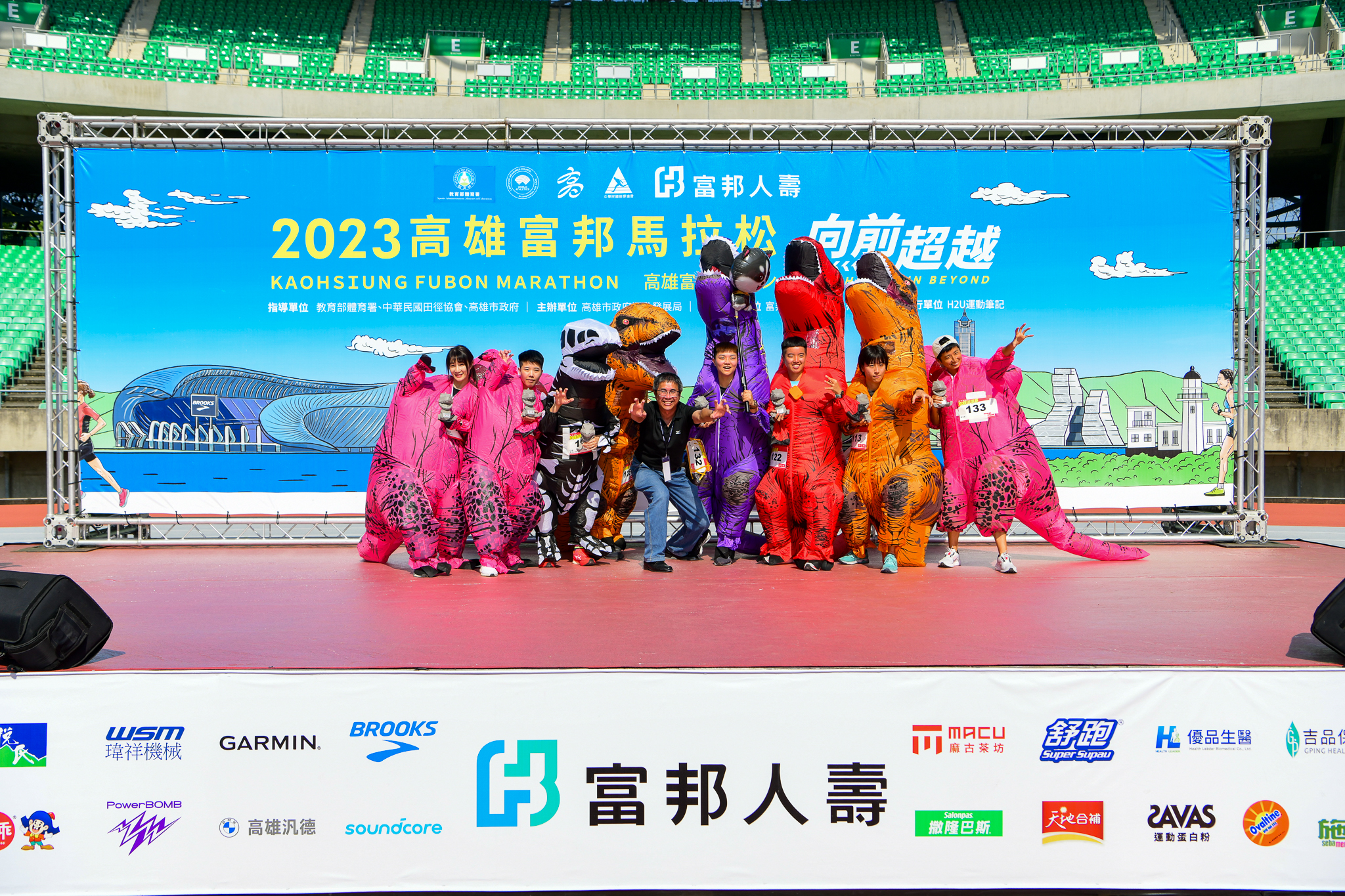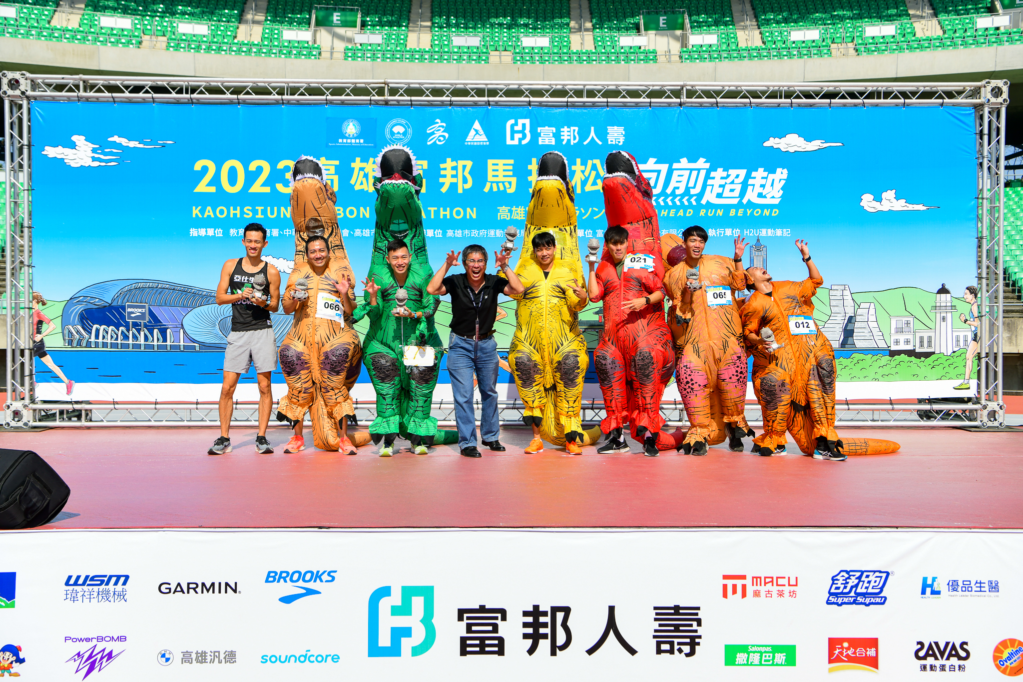 恐龍大軍登陸高雄富邦馬拉松。圖/運動筆記 @詹偉業