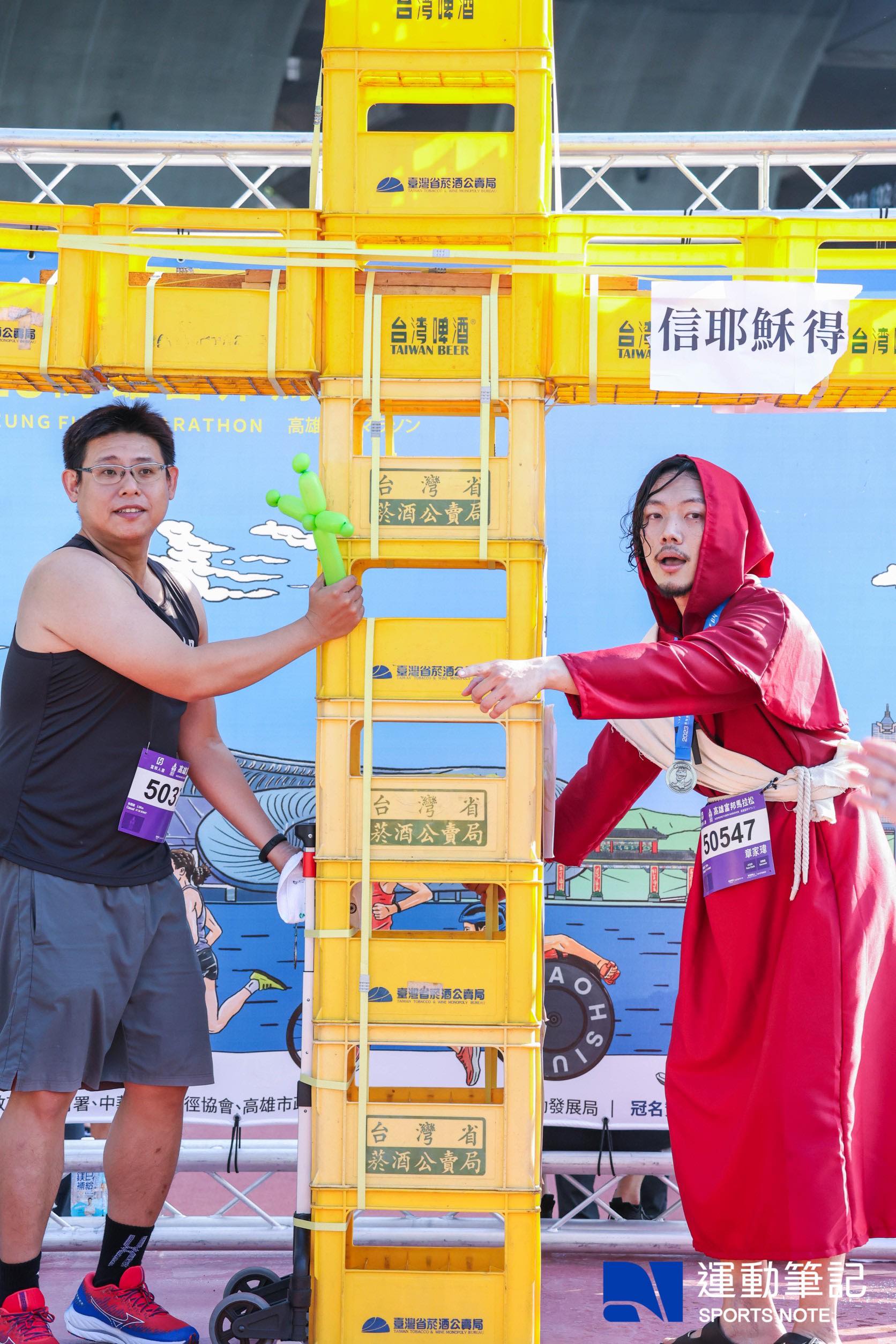 獲得本屆創意造型獎的跑者以耶穌造型加上超大型的「信耶穌得台灣啤酒」十字架擄獲裁判的心,定睛一看,那個十字架竟然是以裝酒箱子打造而成,讓在場的跑者笑翻在地;而首位通過終點的休閒組跑者 楊安 在賽後接受採訪時表示:「今天在賽道看到很多小朋友來參賽,所以我決定要給他們一點刺激。」首次參加高雄馬的他認為休閒組的賽道相當好跑。