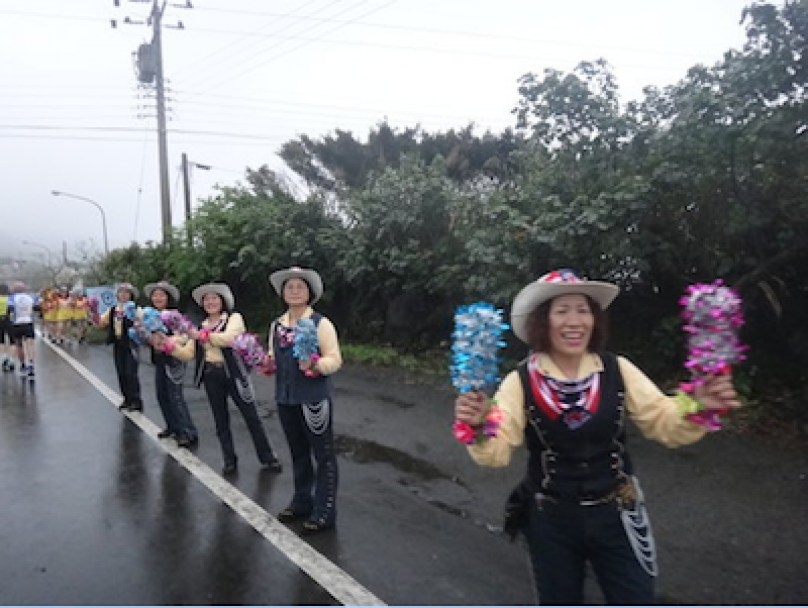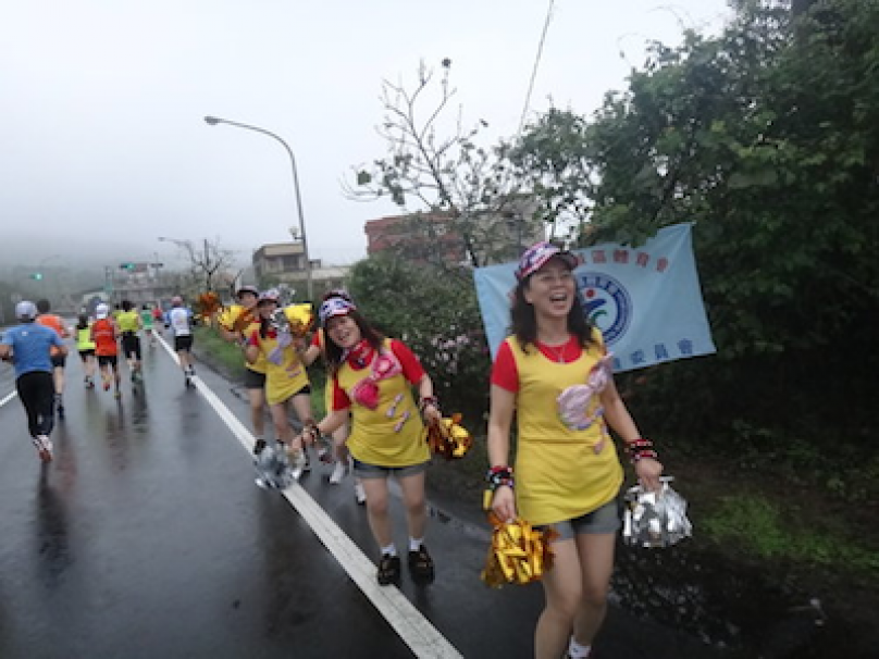 啦啦隊一樣熱情,我的情緒依樣很High,今天的狀況真的很不錯, 比2月分的兩場馬拉松賽狀況都還好,至少沒有抽筋感。