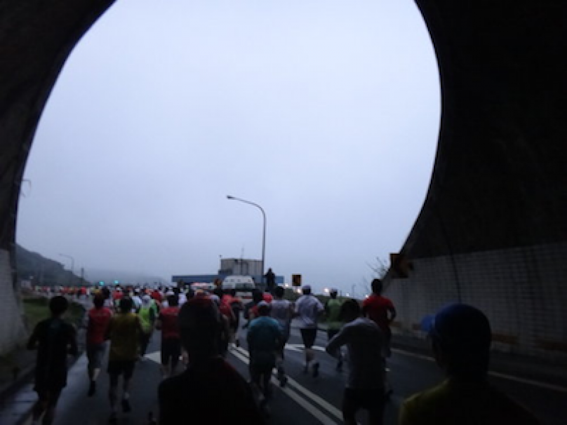 接著有1公里多的隧道,人很多很不好跑,速度只能大約5分速左右。