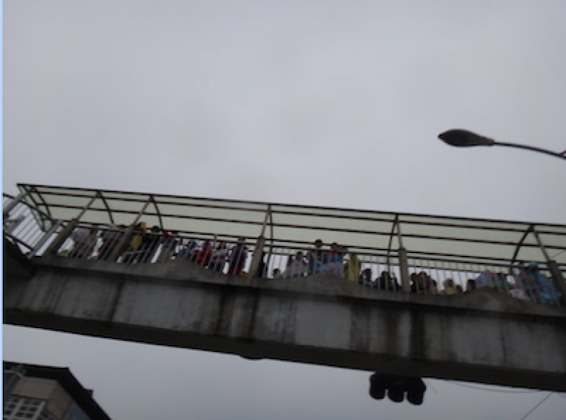 忽然聽到整齊的加油聲,但不見人影,哇~原來在天橋上, 真是用心~~