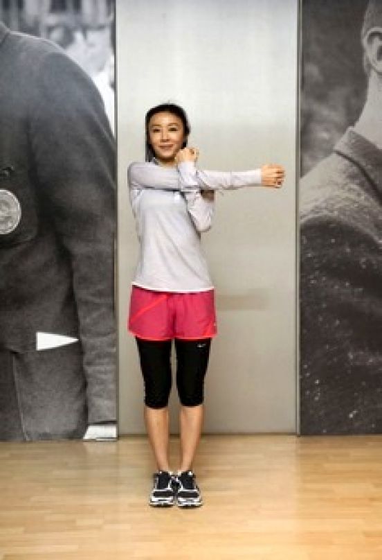 收操時的伸展,除了重複前面已介紹的伸展動作,由於身體已完全活動開,還可再加上以下幾個動作,伸展的範圍也可以大一些,對增進柔軟度很有幫助。
