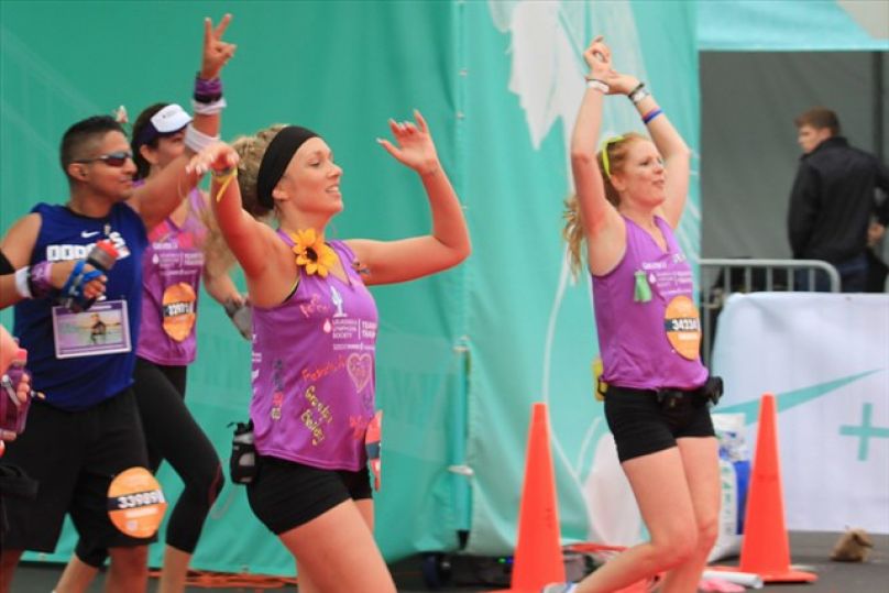 舊金山女子馬拉松還有另一層意義,每年支持美國白血病與淋巴瘤協會(LLS)致力於探尋血癌的治療方法。10年來超過25萬名跑者,募集資金超過1.43億美元,是世界上針對美國白血病與淋巴瘤協會的最大獨立籌款平台。 比賽當天,在舊金山聯合廣場旁的Nike旗鑑店玻璃上,還印著3萬名參加Nike Women Marathon跑者的名字,在密密麻麻的字串中,找出自己的名字,應該是欣喜若狂的一件事吧!