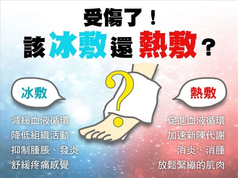 時常聽到許多喜愛運動的朋友,在運動期間受傷了,或是平時關節或肌肉有些不舒服,他們常常都會問一個問題:「請問我該冰敷?還是該熱敷?」