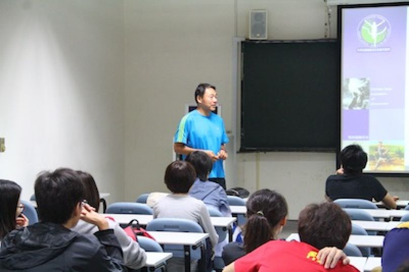 11月21日15:30~17:30第九堂課,今天天氣微陰,下起綿密的小雨,所以郭老師便讓同學們在教室裡上課,跟大家講馬拉松以及超級馬拉松的起源和小故事,希望大家在跑步之餘也能夠了解這項運動。