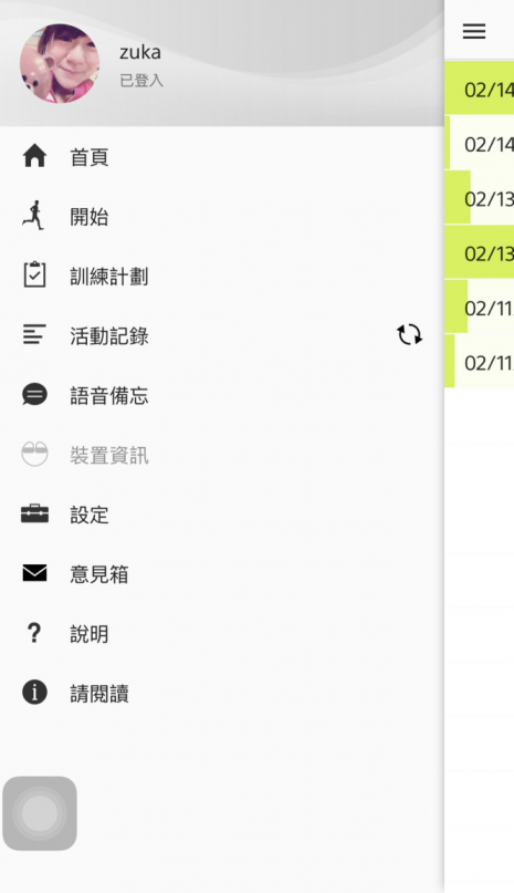 把耳機轉成裝置模式(Device mode),就可以聽耳機裡預先存好的音樂,我在前置作業時先把歌丟進去,但是當下播放的曲目,還是由耳朵上的教練兼 DJ 幫我挑選,所以實際會播出哪首歌,就由 B-Trainer 根據測得的心(率)來決定。
