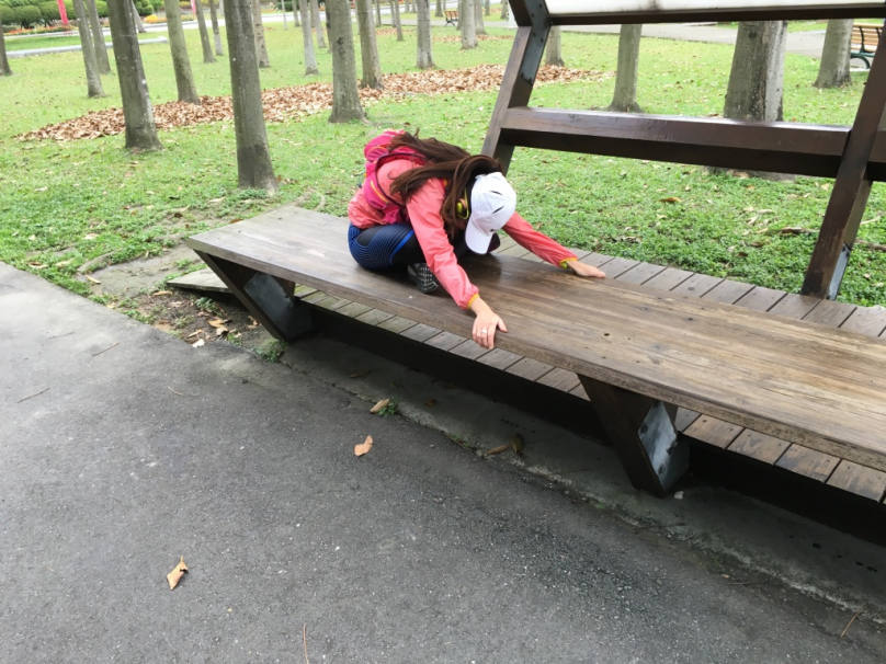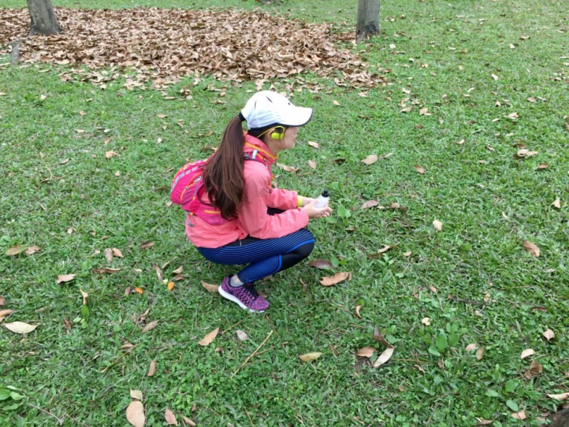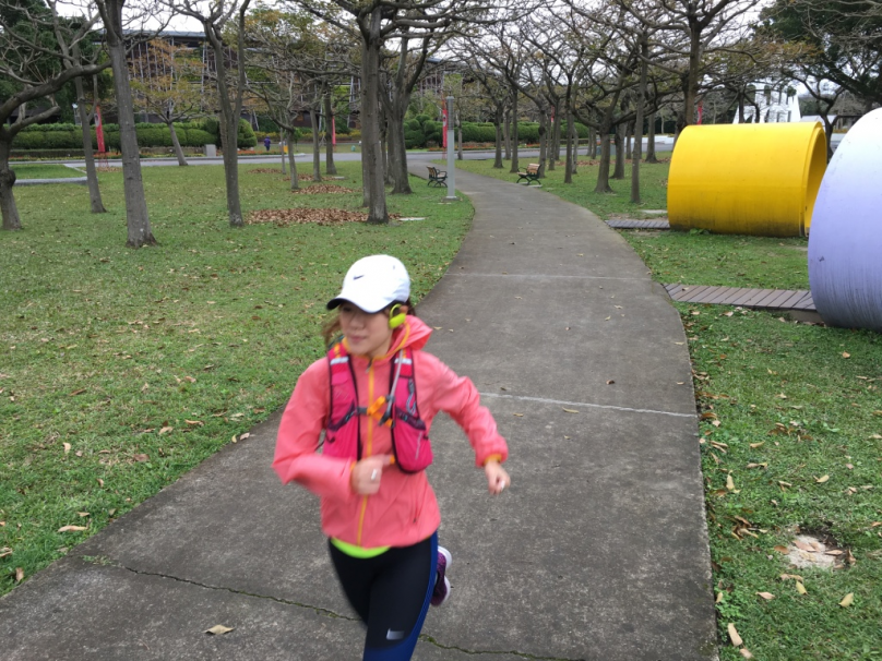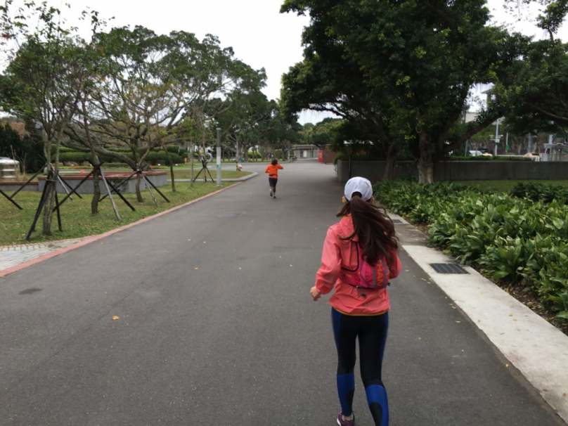 這時,公園裡也陸續出現有人出來運動繞圈圈,剛好在前方就可以跟一下,如果在全馬賽事時,就很熱鬧沒那麼撒咪西,想找人跟的時候前方就會有很多標的物可以選擇,如果有馬尾女孩也可以跟上馬尾,放空一下。