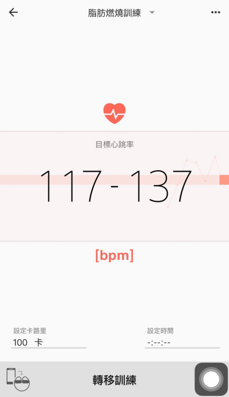 訓練計劃裡可以設定不同的訓練內容,選擇今天要跑的距離、時間或配速,按目的來使用,例如耐力訓練、脂肪燃燒,也可以設定你想消耗多少卡路里,像是我今天吃了金莎,但有句經典名言說:「一個人,一天只吃一顆金莎,是幸福的; 不幸,我剛剛比一顆多了一顆。」這一顆巧克力有 70-80 卡,睡覺前個人覺得良心不安,就零存整付設定了 100 卡,出去跑了一趟這樣,還好 2 公里多就收工,呼!