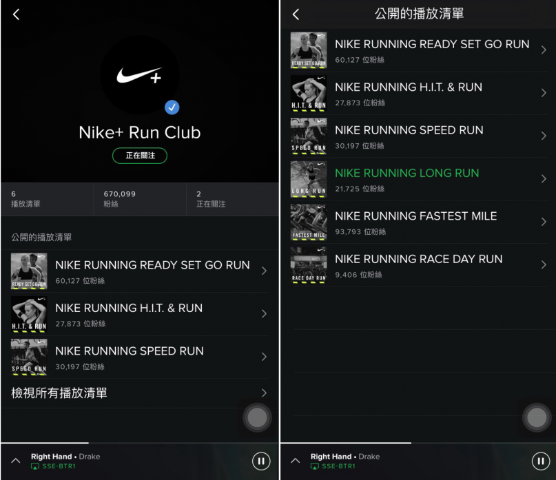 慢慢跑個 1 公里到公園,手機還帶在身邊,就用串流的方式(Streaming mode)透過手機聽 Spotify 上面的歌,我比較常聽 Nike+ Run Club 頻道裡,針對長距離跑步 Long Run 提供的歌單,因為多是輕快但節奏不會太過於強烈的西洋歌曲,曲目會更換,我通常都不會唱,所以可以當不錯的暖身背景音樂!