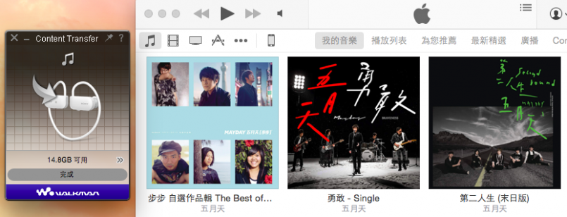 我用 mac 系統,則是用 Content Transfer,把歌拉過去程式畫面就可以傳了,16 G 超大容量,我塞了一堆歌也只用了一點空間……