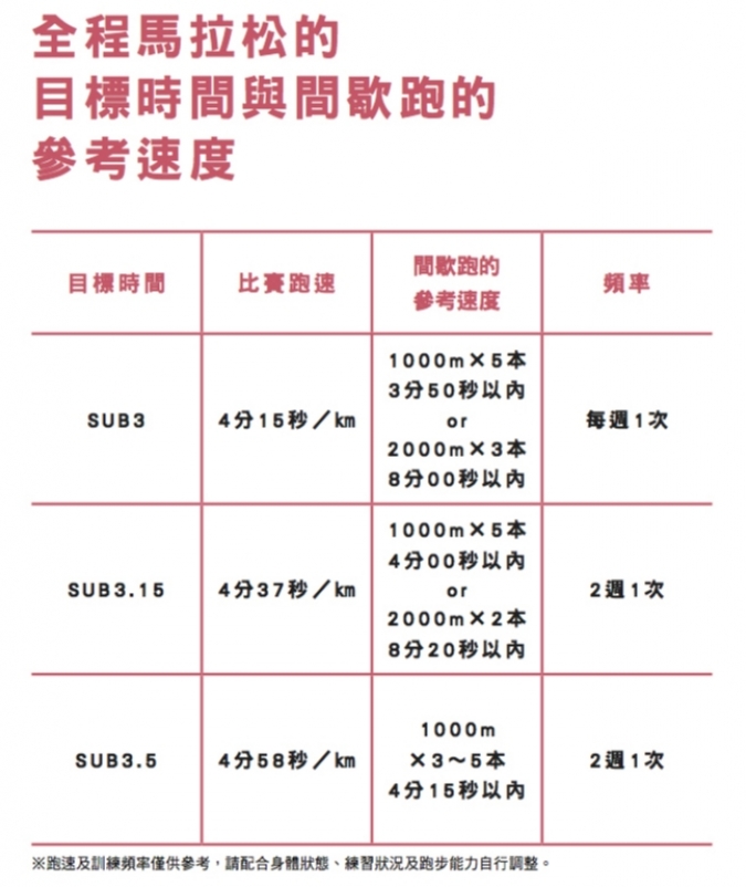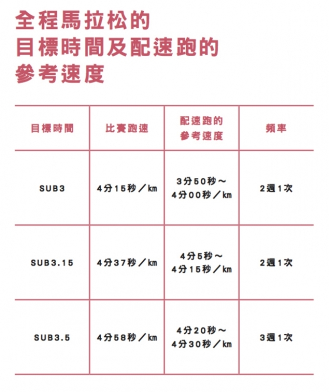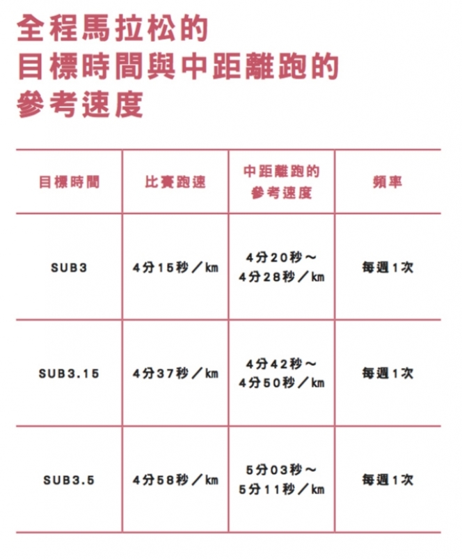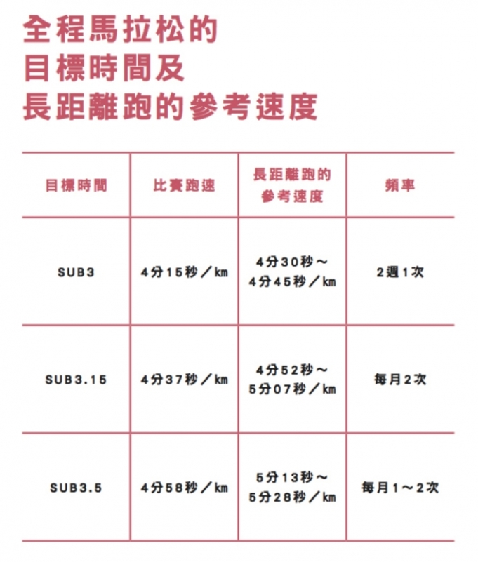 資料來源:《完勝馬拉松 SUB3達陣計畫!》,楓葉社文化出版。