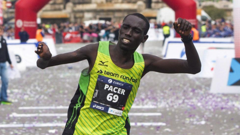 Jonah Chesum 原本是肯亞殘障奧林匹克代表隊的中距離田徑選手,專長是 1,500 公尺。他小時候右手受過傷,從照片可以看出來已經嚴重變形。而在上個禮拜舉行的巴塞隆納馬拉松,他的角色是賽事配速員,希望幫菁英選手打破 2:07:30 的大會紀錄。在這場比賽前,他只跑過半馬,最佳成績是 62:04。