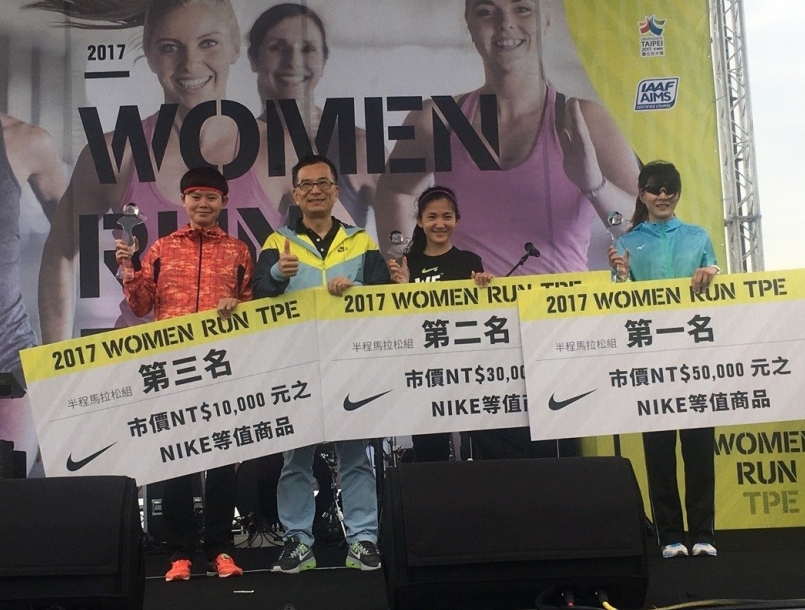 「最強上班族跑者」陳瑋琳(右一)摘下 2017 WOMEN RUN TPE半馬冠軍(圖片來源:記者曾思儒攝影)