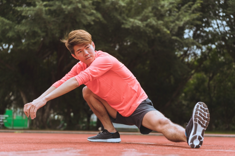 進行法特雷克前,透過跑步基本操進行熱身延展。UA HG 2-in-1 慢跑短褲,強力伸縮型貼身襯褲,強化支撐。附插手口袋、手機內袋。懂跑者的貼心設計,幫助你突破自我。(圖片來源:運動筆記)