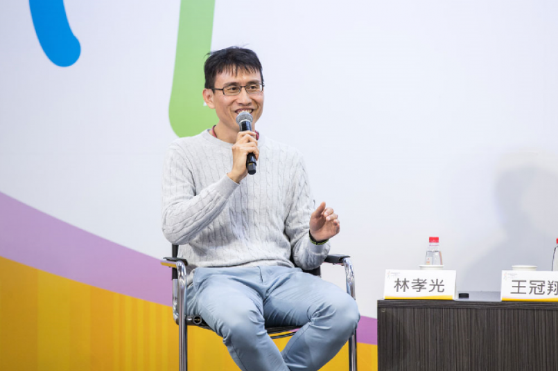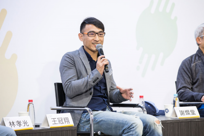 當天分享會特別邀請運動筆記創辦人姚焱堯擔任講座主持人,透過提問方式由 3 位完賽者輪流作答,分享征戰世界賽道數年的心得點滴。(圖片來源:安格斯)