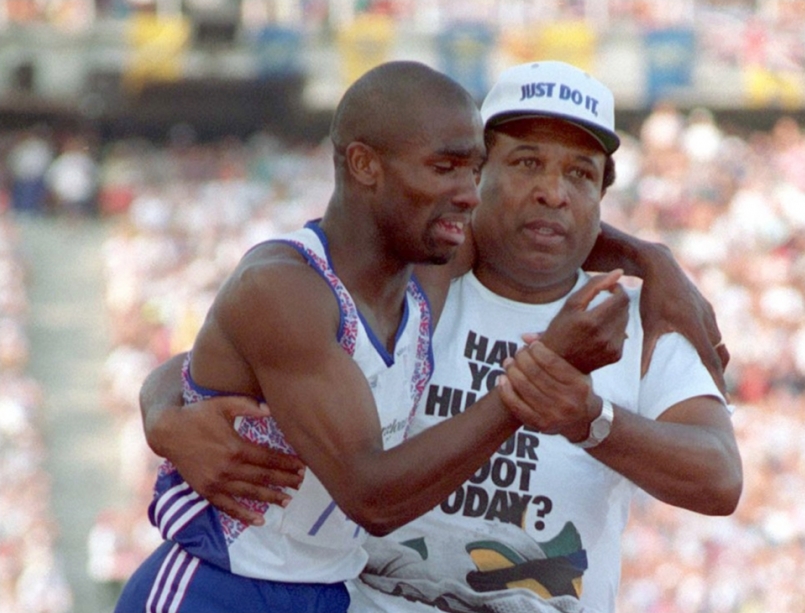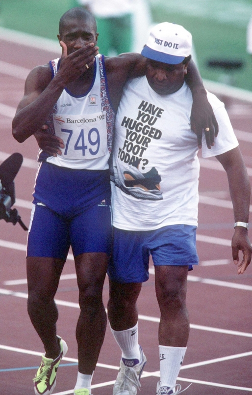 1992 年巴賽隆納奧運,來自英國狀態如日中天的 Derek Redmond 以最快的成績闖進男子 400 公尺準決賽,準決賽鳴槍出發後 Derek 很順暢地起跑,但在 150 公尺時他突然拉傷右大腿後肌踉蹌倒地,他知道奧運金牌的夢已碎、淚灑跑道,工作人員提著擔架趕來,他跪地沈思了一陣後,決定以單腳跳前進繼續完成比賽。