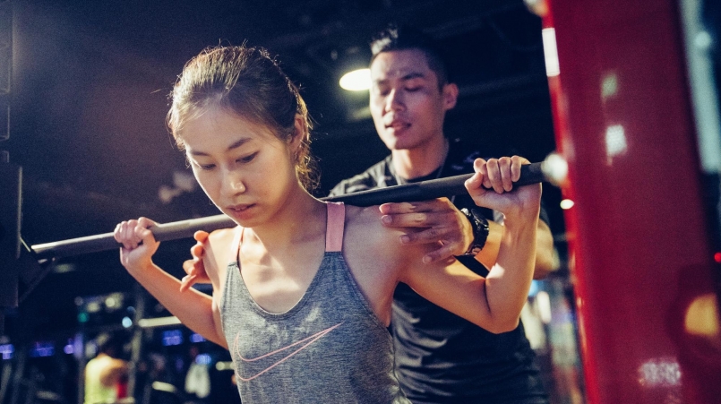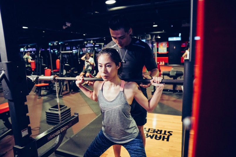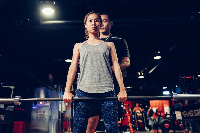 跑者也需要重量訓練,專業教練 Webber 指導下,更能掌握重訓的動作要領,並適時輔助。(圖片來源:Raymond)