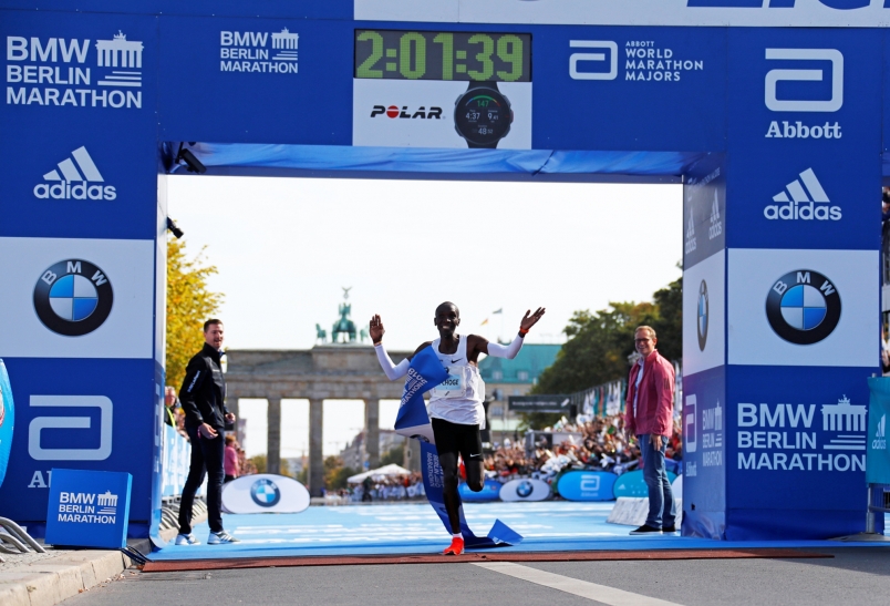 肯亞名將 Eliud Kipchoge 柏林再度封王,更以 2:01:39 打破世界紀錄,平均配速 2 分 53 秒 (圖片來源:路透社)