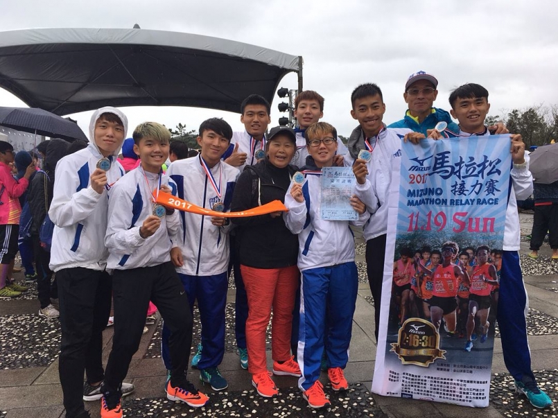 在蔡政軒(左四)畢業前,在許老師的帶領下以台體學生身份最後一次參加馬拉松接力賽,獲得甲組亞軍的佳績(圖片來源:蔡政軒)
